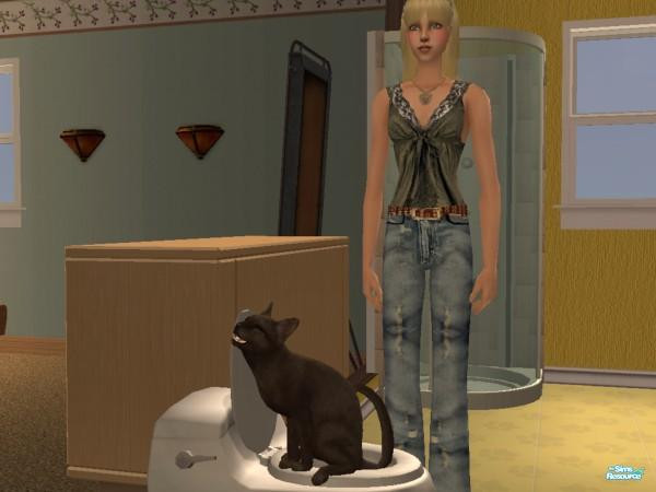 As the title says, My legacy family's cat's offspring has been trained for the toilet, but i've never seen a pet do this before XD, i find it very! funny hehe. Regards~ Tammy xxx