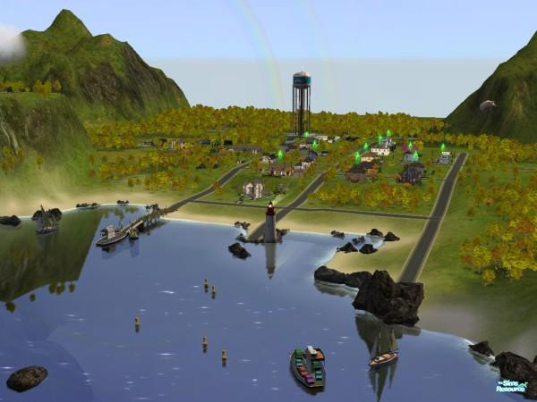 Thanks to FreeTime and the amazing new "modifyneighborhoodterrain on/off" cheat Pleasantview is now not only *seemingly* by the shore, but *actually* by the shore (if you try this at home kids, *Back Up* your hood first, it's easy to ruin everything with this cheat.) The ferry is by Criquette at Mts2, get the marina set too for even cooler shores.