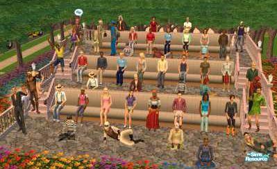 Sayyyyyyy CHEEEESSEEE!!!! Here's my first attempt at building a stage where large groups of sims could be photographed together. Of course I needed to use a cheat in order to invite everyone to the lot, but they're all there. If you look closely enough you'll be able to see BigFoot, the Ideal Plantsim, the Medicine Man, and even Mrs. Crumplebottom, among others. Even Grimmy was there (unfortunately he was too busy gardening at the time and refused to sit in for the photo.)