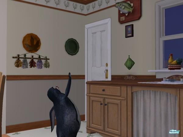 The penguin waves at the fish on my wall.