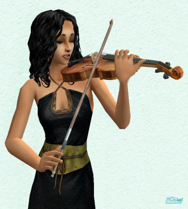My current favourite Sim, a violinist named Zo� Wight. She's a romance Sim and she seems completely oblivious to the fact that the guys trip over each other trying to get to talk to her. She's always surrounded by NPCs (guys mainly) when she's downtown, whether I've taken her or she shows up when I'm playing another Sim.