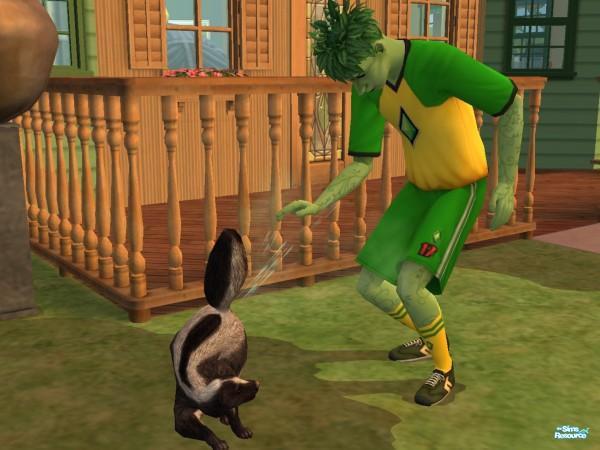 I left my Sim alone while I was tending to the other Sims in the family. When I came back to him, he was petting a skunk.