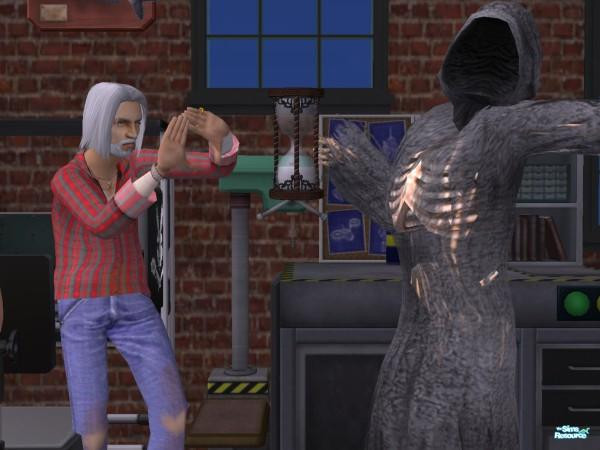 Sims can be really persistent about doing those hobby gestures. Bo is framing his hands while Death comes to get him.