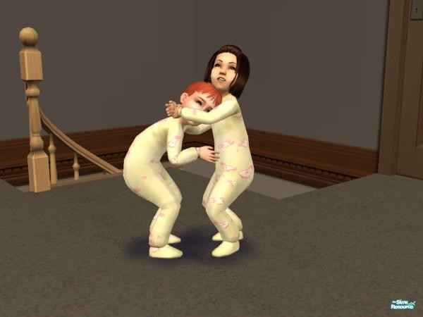 Looks like she enjoys the huggles more than her twin brother.