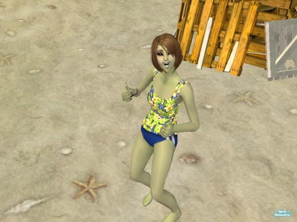 heres ymin at the beach...she took her 2 kids on a summer vacation, first thing she wanted to do was sunbath..i was surprised when she got a nice tan...who knew aliens would tan ....hahahahahahaa