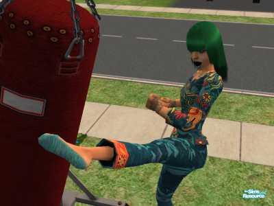 This is one of my Sims who made it to the top of the athletic career track and is using her career reward. Usually their kicks are very quick that they're very hard to catch, but I caught the perfect angle for this one! I love it!