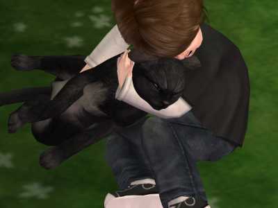 This toddler sim really loves his kitty.:)