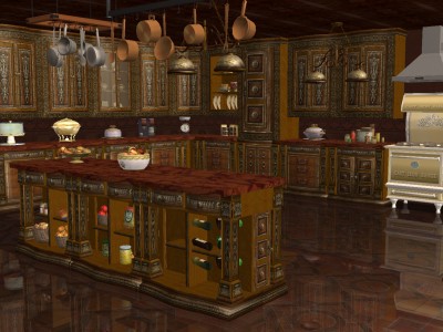 This is a scene from my Victorian story. The kitchen contains the designs from Cashcraft and VitaSims2.com. Part III of my story will be out very soon.