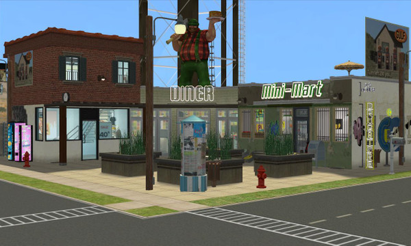 Community lot to go with the rest of Junkyard Development. Mini market, Diner and fashion shop.