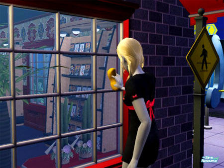 Autonomous action that I've never seen before. A newly turned vampire sim went to a community lot and then started washing the windows of the local shop.