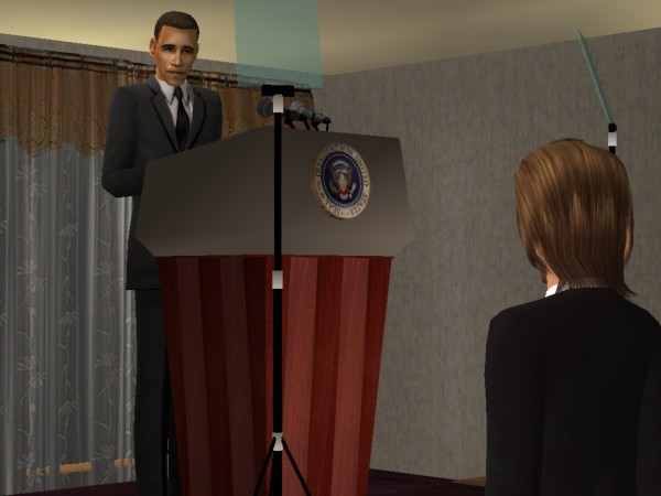 U.S. President Obama listens intently to a reporter's probing question... *nice job Jirka on this Sim, available here at TSR