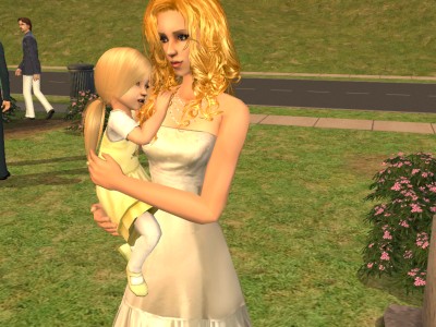 Seraphine holding her daughter, Lauraline, at Seraphine's wedding. She and her fiance couldn't get married for a while because they didn't have enough money to pay everything.