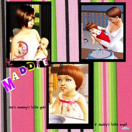 Just playing around in photoshop, creating a scrapbook page for one of my favorite Sims--Maddie Practice.