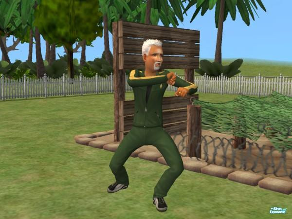 Whenever he has the chance, this sim chills with a bit of tai chi. I had him doing another hobby before he stopped and started his tai chi routine