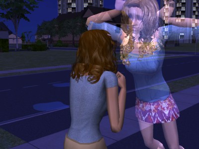 How can you be afraid of something smiling at you? Ghost Seraphine "haunting" her grand-daughter, Bonnebelle.