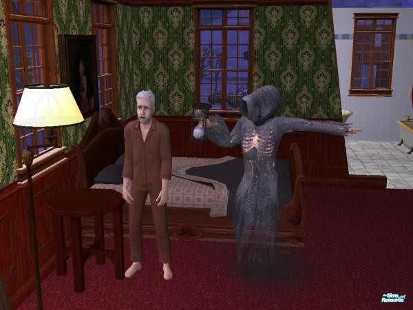 Mortimer looks surprised that the Grim Reaper has come to visit him???