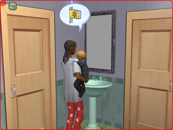 My sim was holding a toddler, and I ordered her to go and practice a speech in the mirror. However, instead of putting the baby down like I thought she would, she took the baby to the mirror and started practicing her speech! :O!