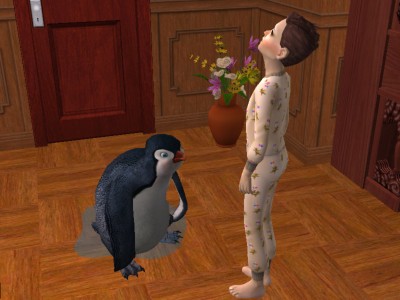 ........the penguin wet the floor..Once it was done, the penguin shook it's tail & wobbled out to the snowy morning.