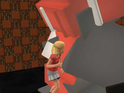 This is my sister's sim. All these blocks are about to fall on her! lol