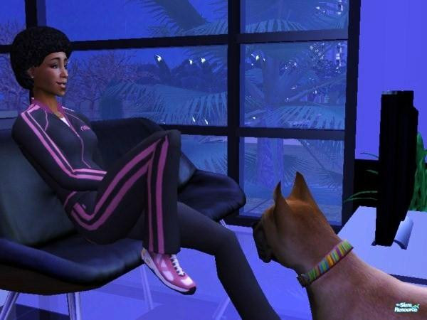 My Sim jo before she cut her hair, looks like Dane is ready to go for a walk.