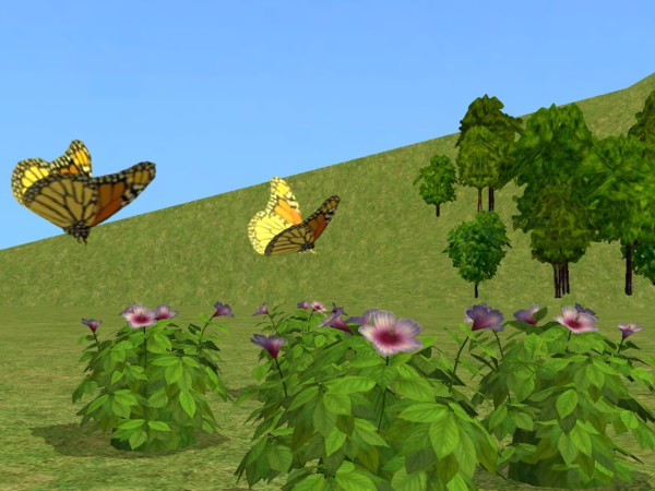 Two beauty butterflies in my Sim's garden.