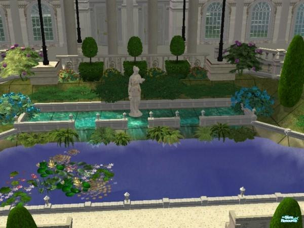A beautiful cascading pond in front of Marble House Newport Beach RI which is still in progress. Terrain paint was used to create the effect of flowing water.