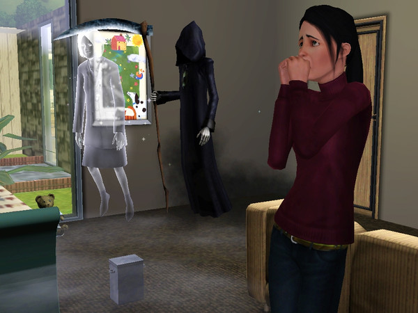 I had my sim visit her old boss, when she suddenly died and Death himself appeared!