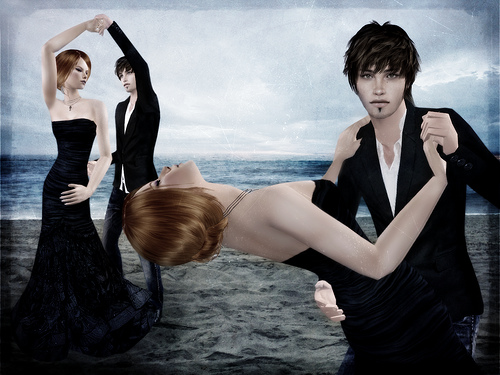 Two beautiful sims dancing on the beach. Screenshot taken and edited by me! :)