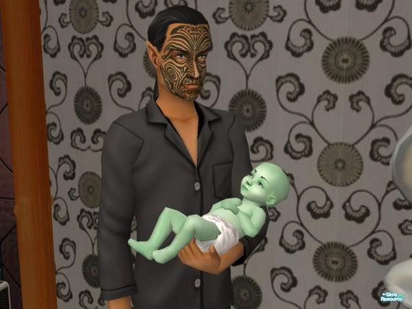 This alien baby girl has her father's eyes, because I used custom content for these eyes.