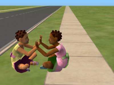 My twins plopped down & started playing patty cake just as soon as the taxi had dropped them off at their lot for the 1st time......cute huh?