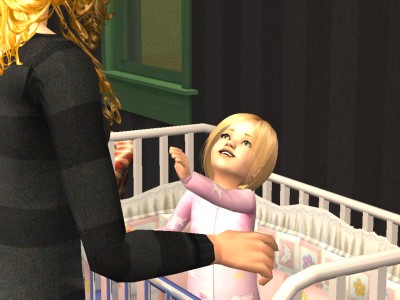 Lauraline waits for mommy to pick her up.