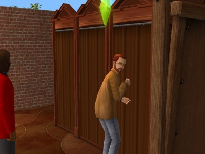 Who could be in that changing booth? Is it his wife or his maid?