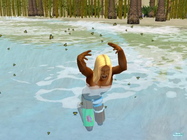 I always thought you should get in water when bee's were chasing you but I guess not for sims, lol. Had him looking for bugs and next thing you know he's being chased by bee's and just ran into the ocean and this is how I found him.