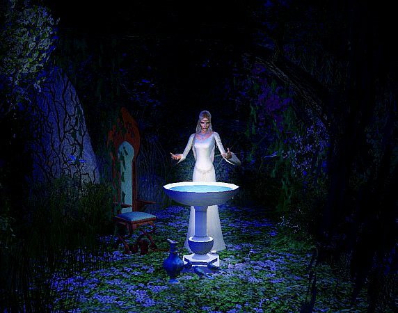 The way the light is surrounding her and the landscaping, looks like a painting, so beautiful