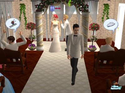 lol the way the scene is is actually so different than it looks right now. the guy with the dark hair is actually her twin brother. he's just leaving because the ceremony ended abruptly. The redhead girl broke off the wedding and left the blonde guy at the alter because she was pressured into marrying him because he comes from a good family and so does she and her friends and family didn't like the gothic guy who she's actually in love with. So she couln't go through with it and her whole family shuns her. Can you tell I'm a big soap opera fan? lol