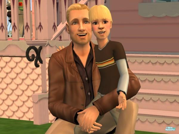 There's a black box I think I downloaded it from MTS2 it enabled a variety of poses for adult sims. Kind of a hack. And the boy is posing in "ta daa" position which is an ability came buy Bon Voyage expansion pack. And boolprop snapobjectstogrid false & moveobjects off cheats let me place my sims as I wish.