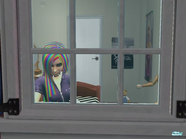 awesome hair! awww she's sad! u know what i do when my sims are sad? I get their worst enemy over and then i put them in a box outside and set fire to it... they die and my sim (being as evil and f***** up in the head as i am) laughs and claps their hands (like i do) ^__^ \:P \:D