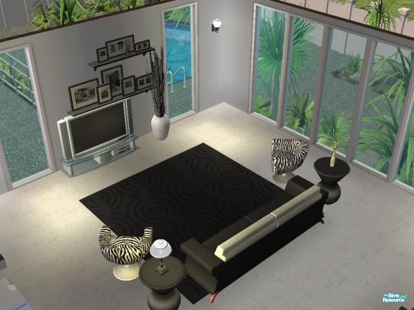 Lounge room of my new Modern Living 2 lot available to download from today. Bookshelves on wall from Holy Simoly