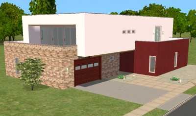 I saw plans for a house like this online and as soon as I got time, I started building it. I was surprised how quickly it was nearly finished, only really a couple of hours tinkering and I thought it was perfect. I'd even landscaped. I played a little Real Life for a while, came back and looked at the plans again, and the artists impressions.. and tinkered some more. Then I rememberd the daylight/nighttime switch and added a few lights.