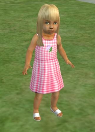 Her name is Stella and her dad looks like goopy. She is a 2nd generation of the Camerons. Her mother is Della first born quintuplet.
