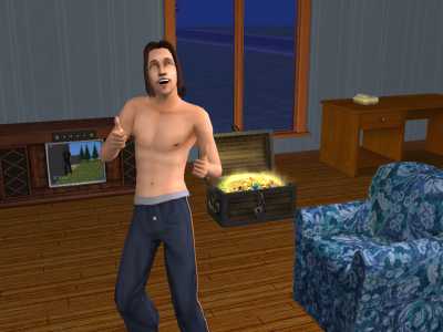 I'm a gold digger in the best possible way! I'm with my Sim......."2 thumbs up for digging up treasure chests of gold!".
