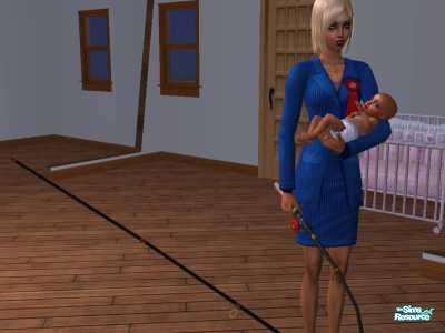 Brittany, middle daughter of Adam's, youngest daughter of Eve's, holds her new born baby and aparently forgot to put away her fishing pole....