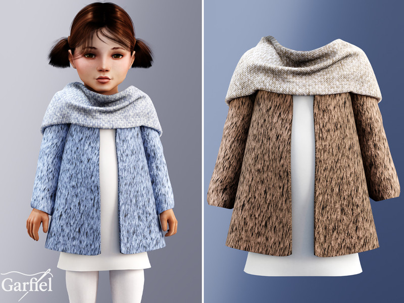 A charming toddler wool coat paired with a cozy matching scarf that drapes softly around the shoulders. The textured fabric offers warmth and comfort while keeping a refined, winter-ready look. Its loose fit allows easy layering over seasonal outfits, perfect for chilly walks or festive outings. Available in warm brown and soft blue tones, this design blends practicality with timeless, elegant charm