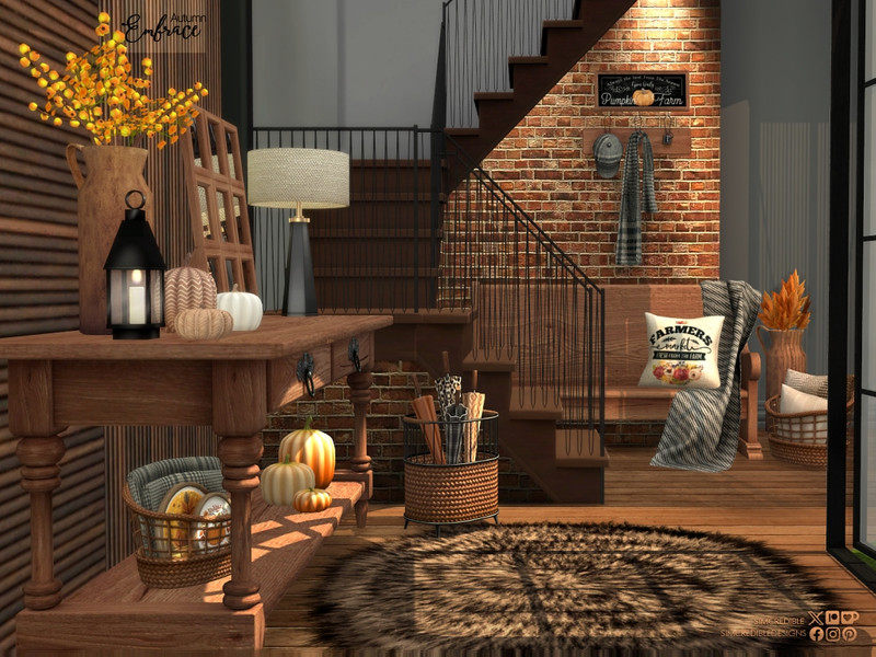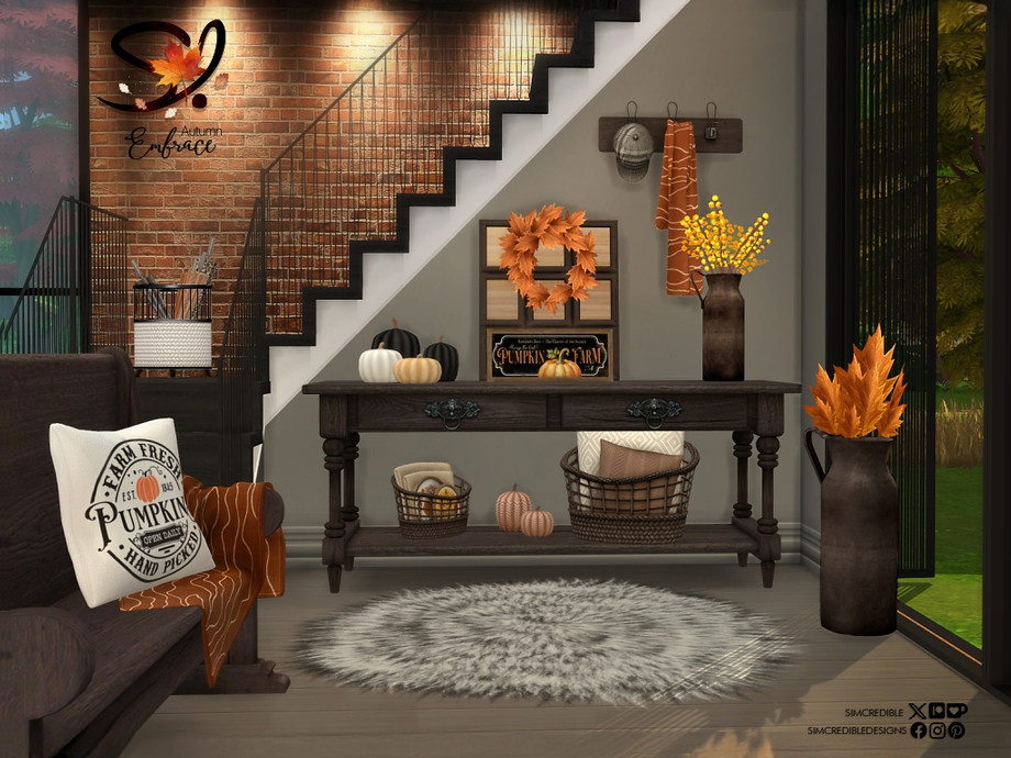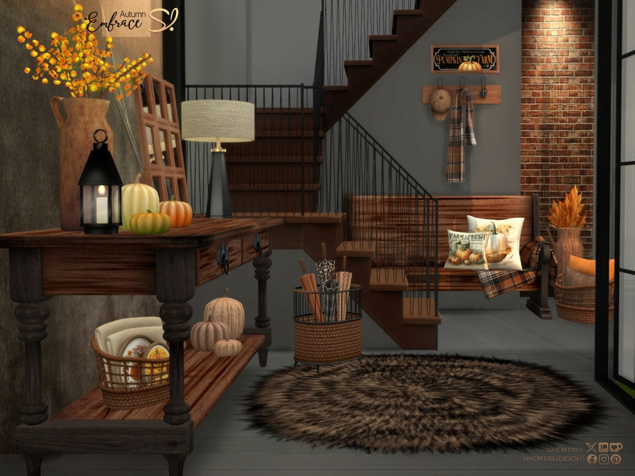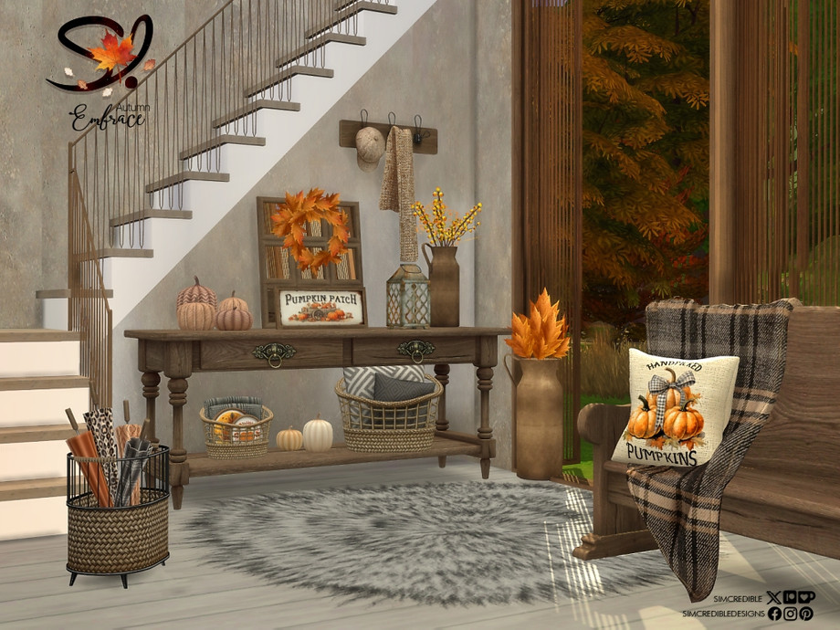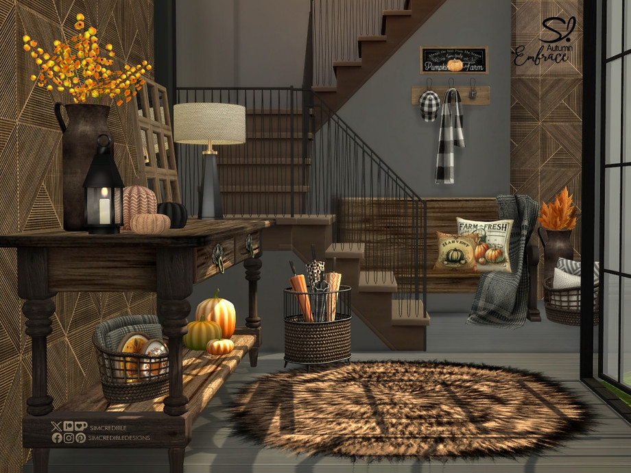 Sims 4 — Autumn Embrace Hallway by SIMcredible! — An autumnal entrance set with this season's colors for your sims.