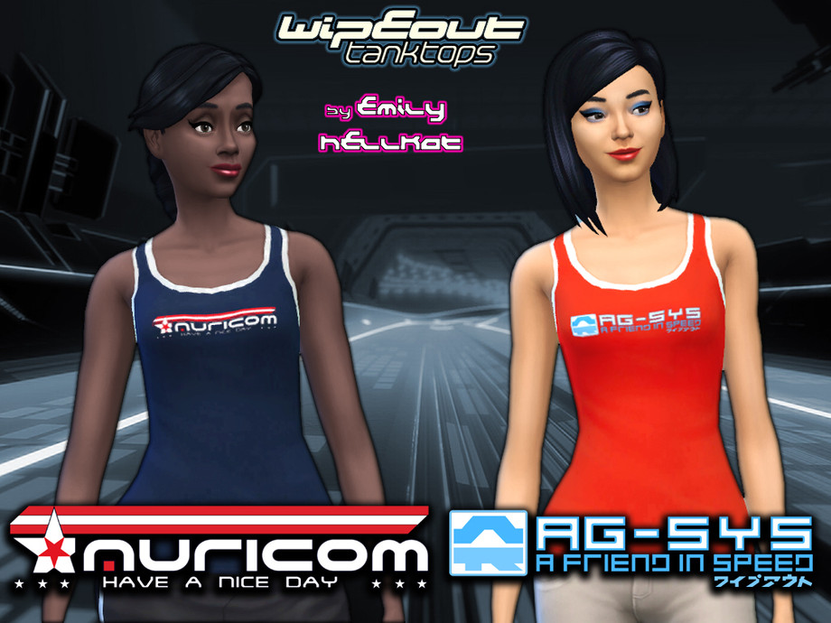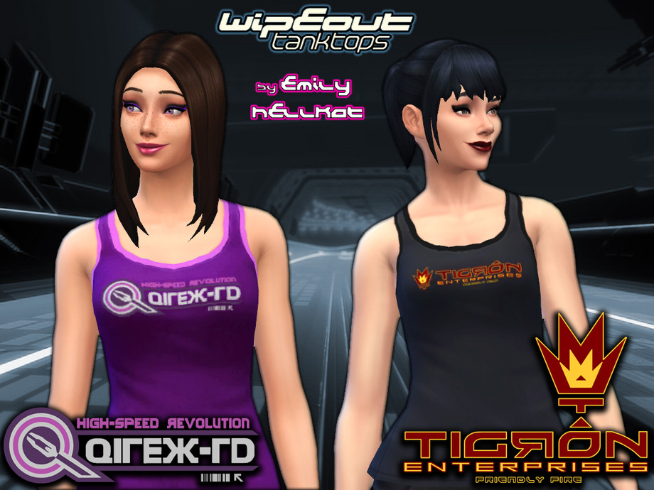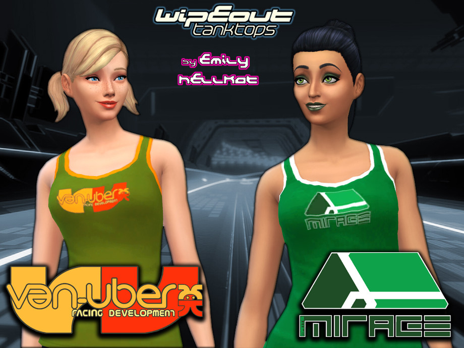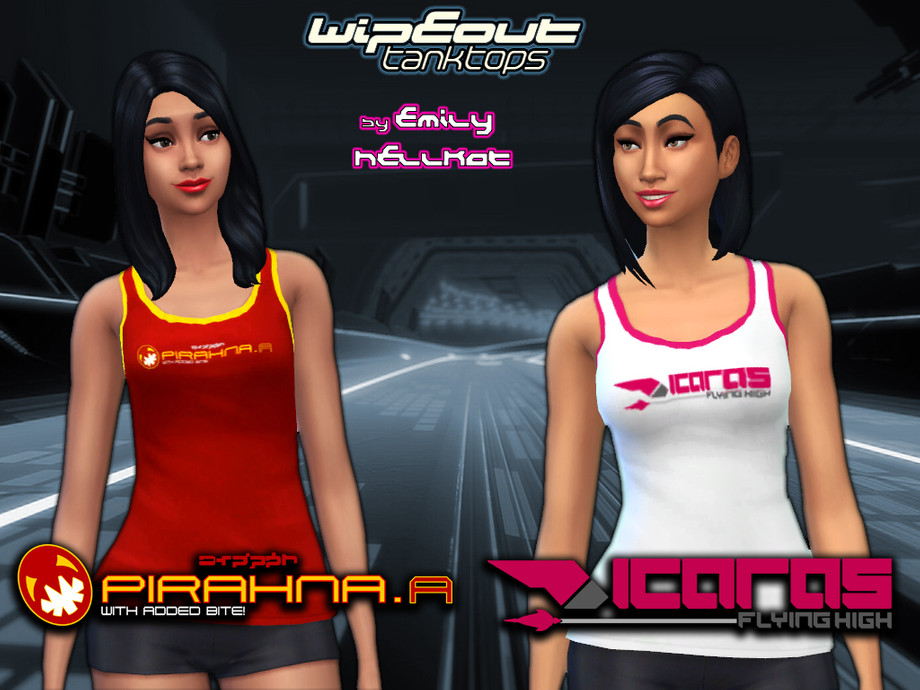 Tank-tops for women with "team company logos" from Playstation's wipEout series.