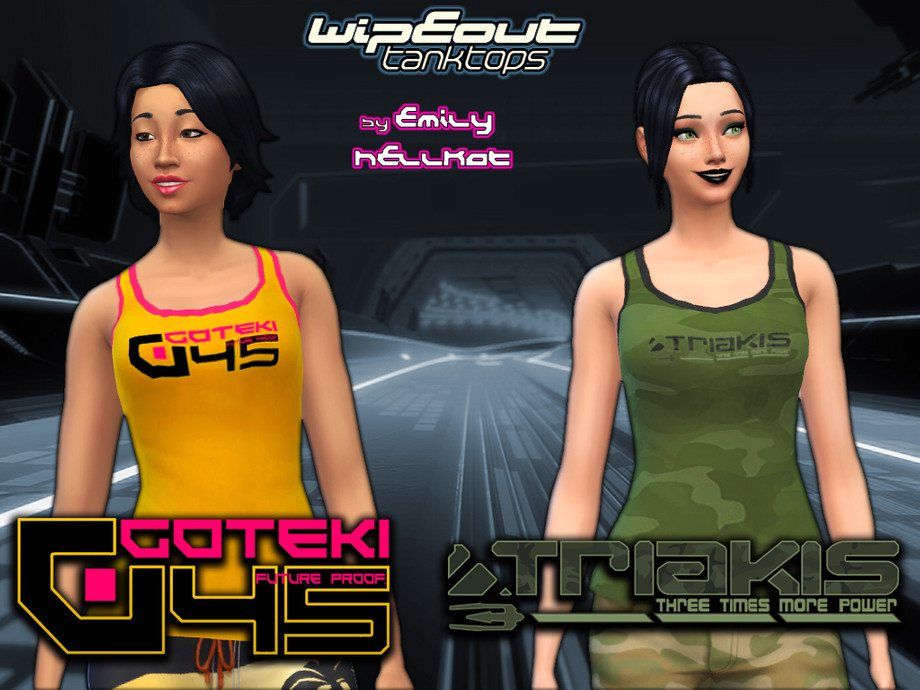 Everything the few fans of both wipeout and sims4 need, specifically for women. It works on men but looks a little off. If I get any interest in a male one it wouldn't be hard to transplant.