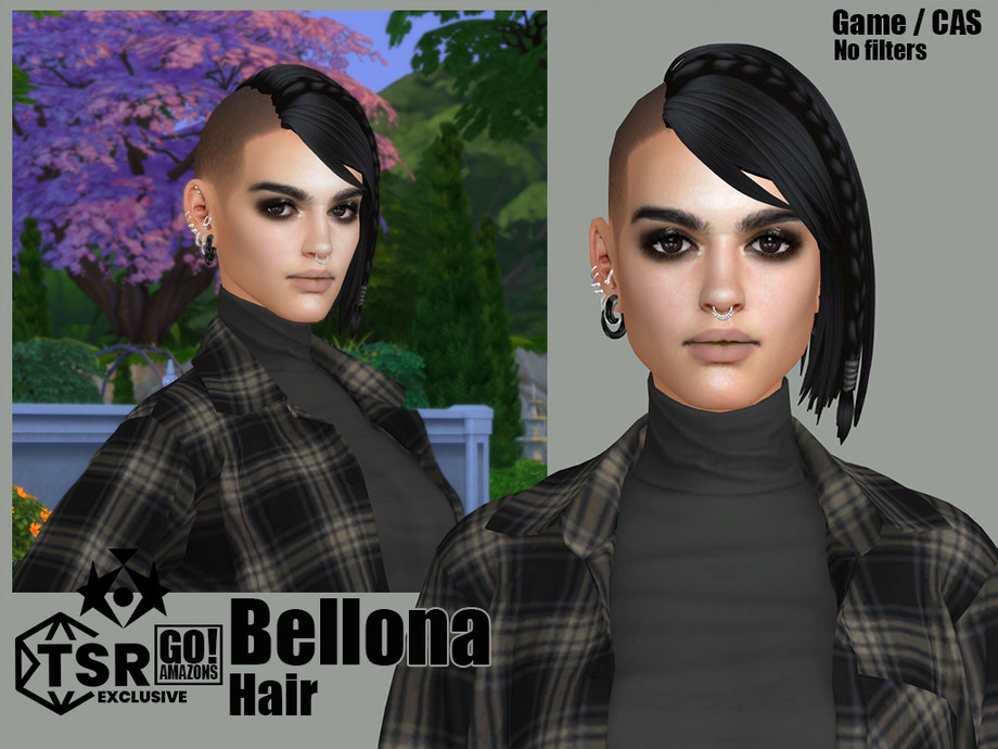 Sims 4 — Bellona Hair by GoAmazons — Undercut hairstyle with braid for female sims in maxis style.