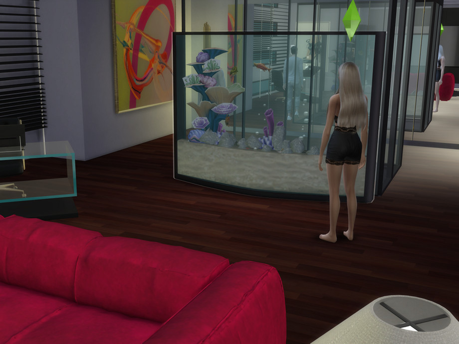 Sims 4 — Functional Aquarium Soleil by FirstR2 — Bring a warm, modern glow into your Sims home with the Aquarium Soleil.