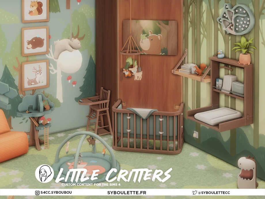 Little Critters is a delightful custom content set designed for infants, toddlers, and kids, all wrapped up in an enchanting animal forest theme. Bursting with vibrant colors (except a quirky sad beige swatch for contrast) it transforms any room into a playful woodland retreat. This set is also the opportunity of a fantastic collaboration with Luddysims, whose charming artwork shines through in cute paintings and seamless wallpapers. From an infant co-sleeper crib that works with adult beds to a basegame changing table, highchair, playmat, toys, books, and plenty of decor, Little Critters is the perfect way to celebrate every stage of childhood in the cutest way possible.