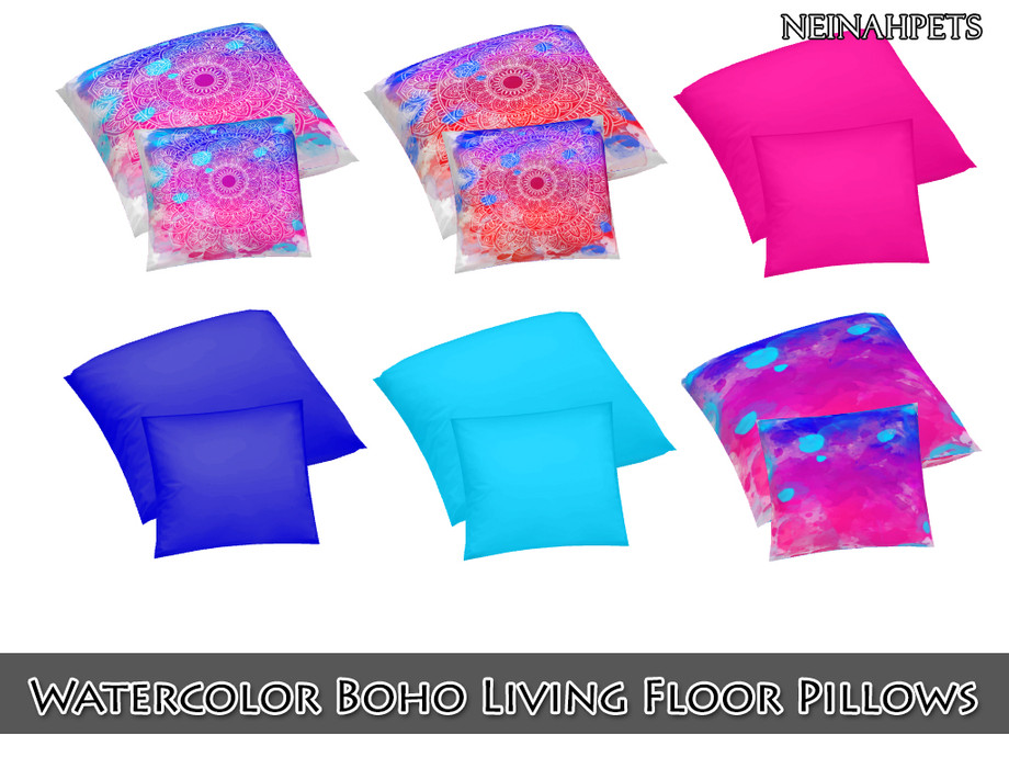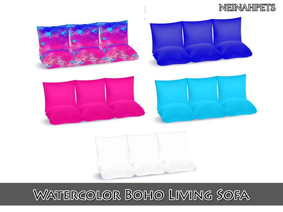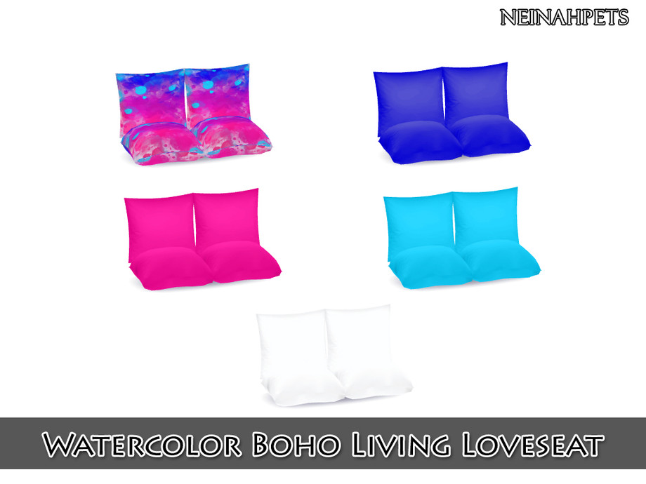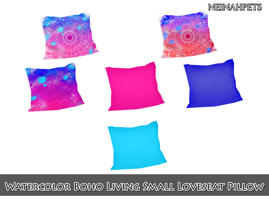Fun and funky colors and watercolor splashes accented by mandala artwork decorate this unique bohemian living room set.